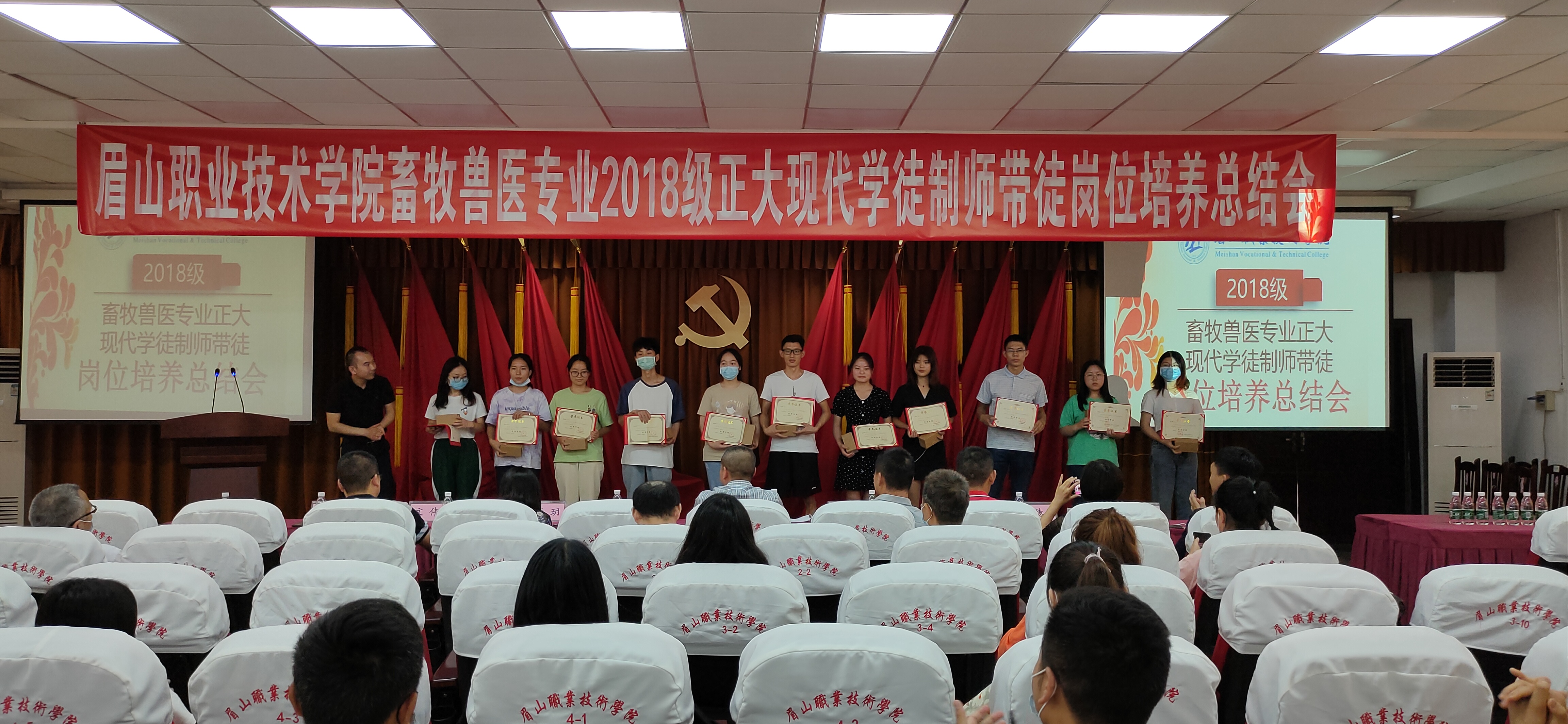 最后,颁发了优秀导师和优秀学徒奖,鼓励师徒同心协力,共同将畜牧行业发展光大,同时期望同学们在今后的道路上越走越宽敞,越来越顺利。