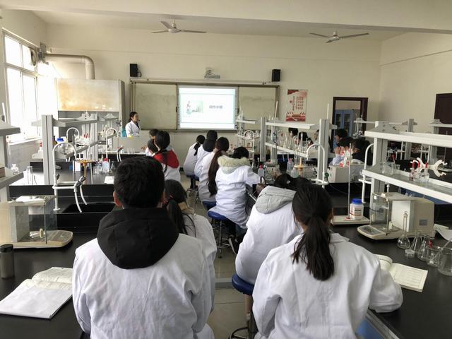 活动现场,青年教师胡婷婷展示参赛作品《碳酸钠溶液的配制》一课。胡婷婷老师以配制100mL1.0mol/L的碳酸钠溶液为例导入课题,引出“如何进行配制前固体用量的计算”,通过提问的方式引导学生进行深入的学习配制过程中的注意事项,解决了教学重点问题,最后通过展示学生操作的图片,引导学生分析实验误差,很好的解决了教学难点问题。该教师在教学过程中充分利用课堂派、视频、图片、QQ等信息化手段,系统的优化了教学过程,突出学生主体地位,体现“做中学、做中教”,学生参与面广,针对学生学习反馈及时调整教学策略,有效的达成了教学目标,很好的完成了教学任务。