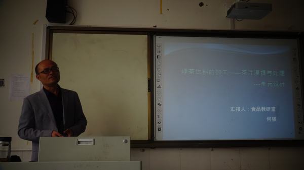 首先,根据眉山职业技术学院《教师教学设计竞赛活动方案》(眉职[2016]54号)及食品教研室活动计划,何强老师和李杉杉老师分别做了题为《绿茶汁的浸提与处理》、《细胞的结构与革兰氏染色》的单元设计说课。从说课情况来看,两位老师都在暑假提交材料的基础上从教学分析、教学设计、汇报PPT等方面都进行了进一步的优化,这是老师们在课余坚持不懈地进行课程钻研的结果。