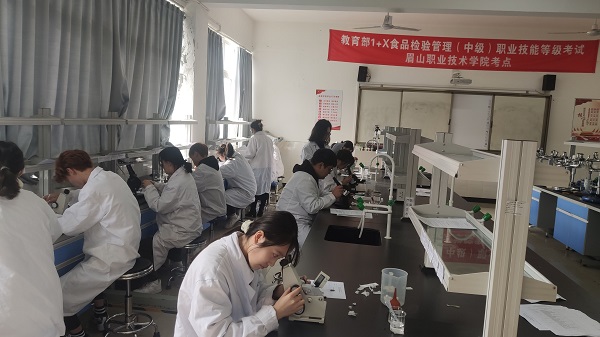 11月20日,农业技术系2021级食品专业共50名学生参加“1+X”食品检验管理职业技能等级证书(中级)考试。