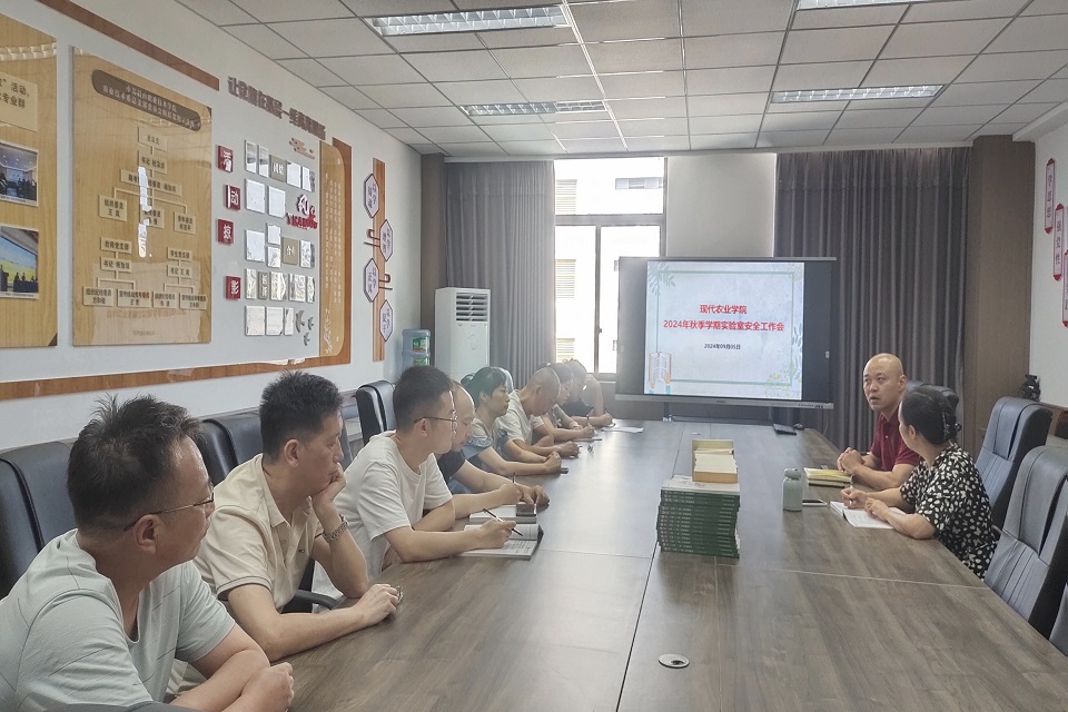 9月5日,现代农业学院在6301办公室召开2024年秋季学期实验室安全工作会,现代农业学院党总支书记杜宗洪,党总支副书记、院长杨加琼参加会议。