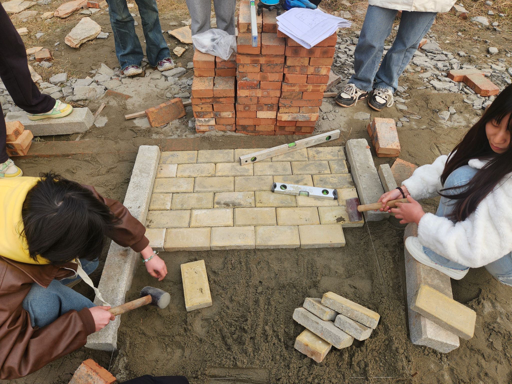 12月3日,2024级园艺技术专业学生在学校园艺施工实训场开展景观道路铺装工程实训。