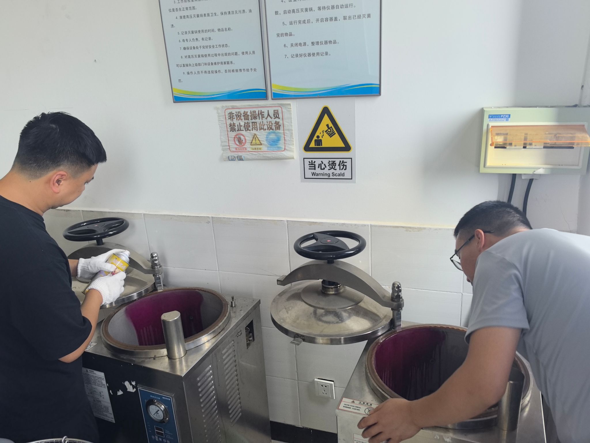为保障特种教学设备安全运行,7月7日,眉山市特种设备监督检验所来校对现代农业学院实验室快开门式灭菌锅开展专项安全检测。
