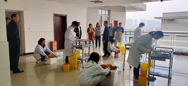 最后,全体教师前往全国大学生动物防疫职业技能大赛赛前培训现场,对鸡心脏采血、鸡体解剖及器官采样等比赛项目给予指导和建议,进一步提升参赛学生的技能水平。
