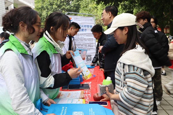 活动中,平台工作人员通过展示宣传海报、发放宣传手册、现场讲解等方式,围绕“四川科技兴村在线”平台的建设背景、运行情况、服务内容、生产效益等方面向广大师生进行详细的科普介绍,并鼓励引导大家下载平台APP,积极上传各类种植、养殖问题。