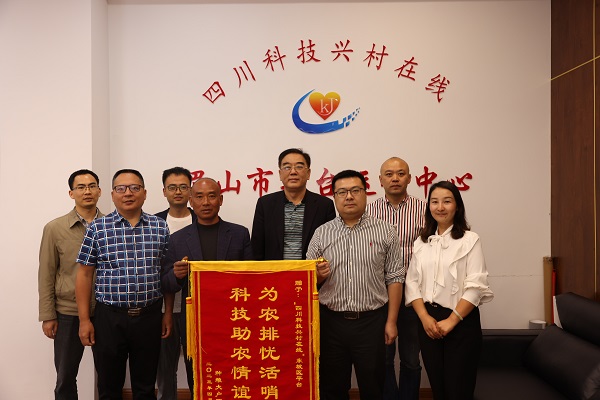 4月28日,在位于学校内的四川科技兴村在线东坡区平台运营中心,东坡区太和镇的种粮大户罗建敏将一面写着“为农排忧活哨点 科技助农情谊深”的红色锦旗赠与“四川科技兴村在线”东坡区平台,感谢该平台利用科技手段帮助他及时解决了水稻种植当中遇到的紧迫问题。