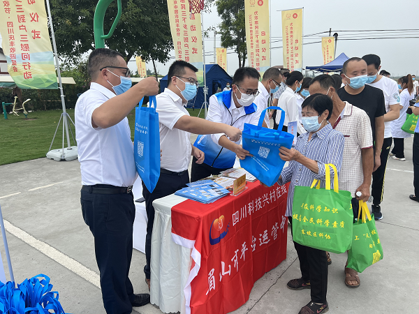 9月18日,2022年中国农民丰收节四川庆丰收迎盛会•为农惠民“三下乡”“三到户”“三慰问”行动启动会在东坡区太和镇永丰村村委会举行。为充分展示我市对助农惠农系列活动重视,有效推进“送科技下乡”,市科技局将“四川科技兴村在线”眉山市平台作为现场科技巡展活动的重要内容。市科技局党组书记梁宁、农村科技与科普科科长杨辉、“四川科技兴村在线”眉山市平台负责人伏晓科参与了此次巡展活动。