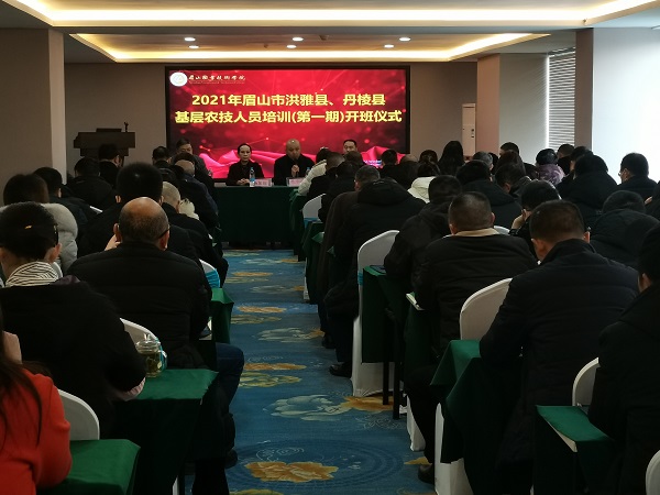 12月20日,由我校作为四川省现代农业技术培训基地和全国乡村振兴人才培养优质校承办的2021年眉山市洪雅县、丹棱县基层农技人员培训第一期在眉山市宏帛酒店开班。农业技术系主任杨加琼、副主任杨俊参加了开班仪式,开班仪式由农业技术系党总支书记杜宗洪主持。