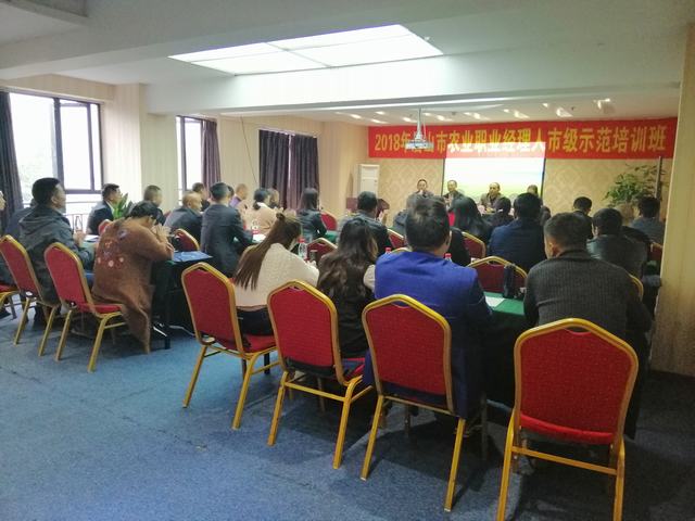 开班仪式结束后,眉山市农业局科技站站长邓洪庚作了《农产品质量安全与品牌创建》的专题讲座。