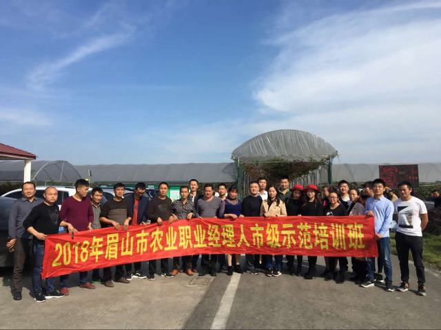 2018年10月30日,眉山市首届农业职业经理人市级示范培训班30名学员在眉山职业技术学院教授马建英、班培训班主任彭婷和陈航老师的带领下,前往彭山区现代农业示范园区参观学习。