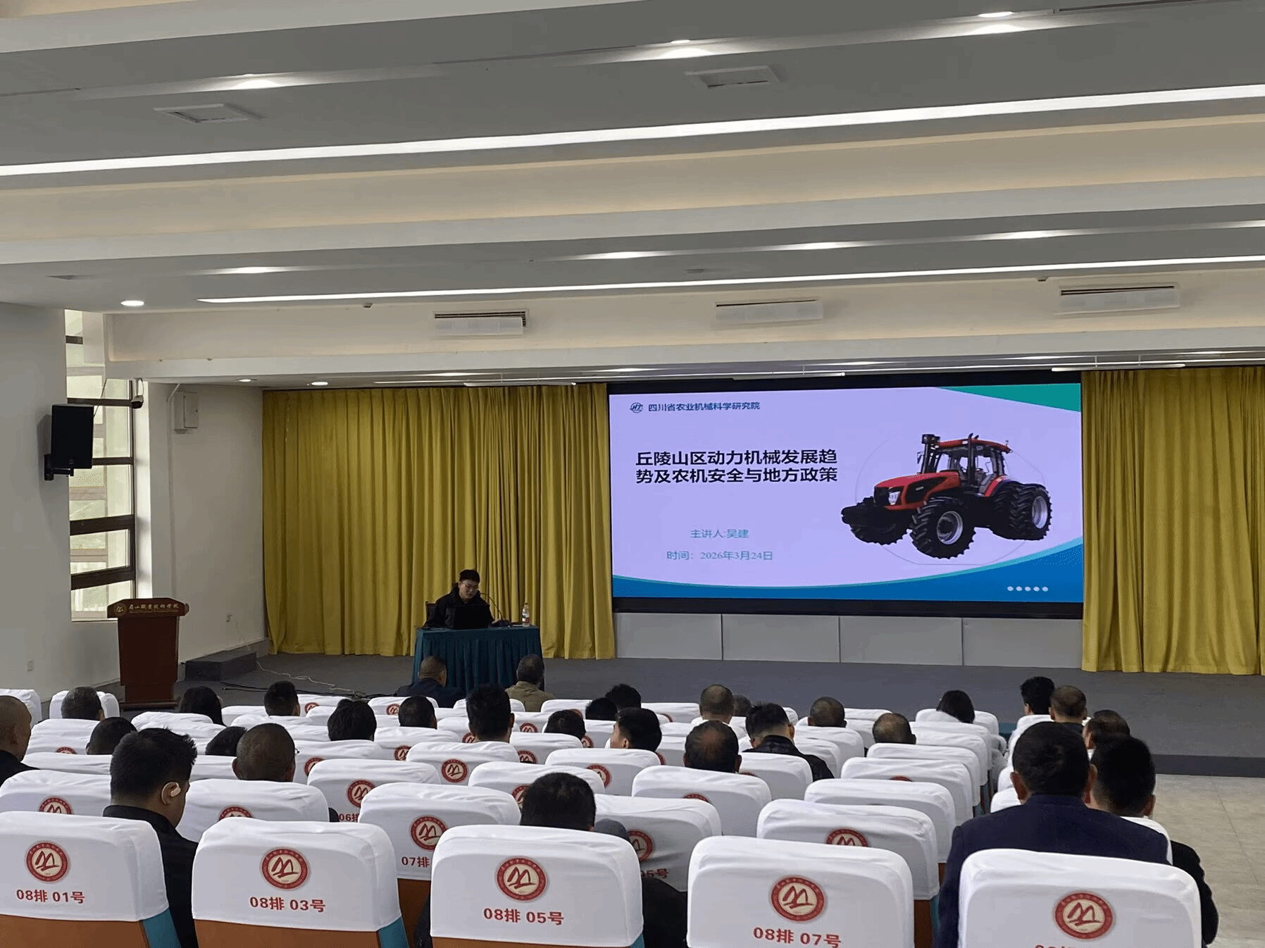 上午,培训以专题理论授课拉开帷幕。邀请四川省农业机械科学研究院工程师吴建为学员带来“丘陵山区动力机械发展趋势及农机安全与地方政策”专题讲座。吴建结合四川丘陵山区地形特点,深入剖析了当前动力机械的技术演进方向,系统讲解了农机作业中的安全规范与地方配套政策。课程内容紧贴实际、案例丰富,帮助学员在宏观认知与操作规范层面同步提升。