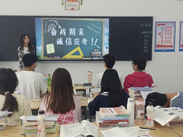 班会上,辅导员领学了眉山职业技术学院《学生管理制度汇编》上有关诚信考试的相关内容以及考试违纪、作弊处理办法,并通过案例分析,让同学们认识到作弊的危害以及诚信的重要性。