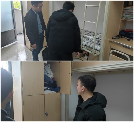 本次重点检查寝室内是否有存放违规电器、烟头、易燃易爆等物品,是否有饲养小动物的行为,物品摆放是否整齐,垃圾是否及时处理等情况;通过检查发现,各寝室总体情况较好,床铺及生活用品整齐美观,寝室内无违规电器;针对个别寝室存在的卫生问题,老师们现场提出整改意见并以简报的形式发至相关班级群内进行公示,便于进一步提高学生寝室的管理水平和制定整改方案。
