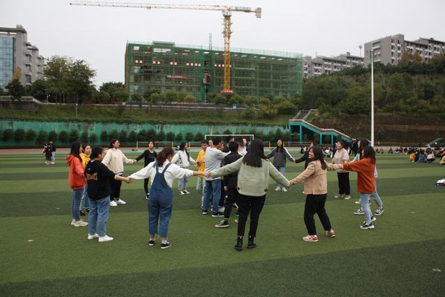 本次素质拓展活动以班级为单位,以“网鱼”、“贴膏药”、“抢板凳”等小游戏为载体开展。活动中,各班级成员积极参加,全情投入。一个个精心设计的游戏激发了同学们的热情,每个活动都默契配合,充分发扬了无私奉献和团结协作精神。兼职班主任和辅导员也积极参与到活动中,点燃了同学们参与激情,操场上充满了欢声笑语,场面既激情如火又温馨和谐。