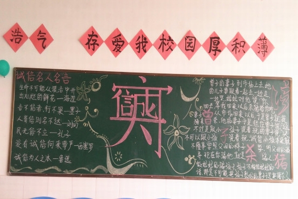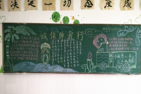 活动从排版、内容、创意、视觉效果四个方面进行综合的评定。此次活动为期一周,各班级积极参与布置班级黑板报活动中,各班的黑板报展现出不同的风格,采用多种艺术形式贴近“诚实守信”主题,做到了主题突出、内容丰富、图文并茂。?