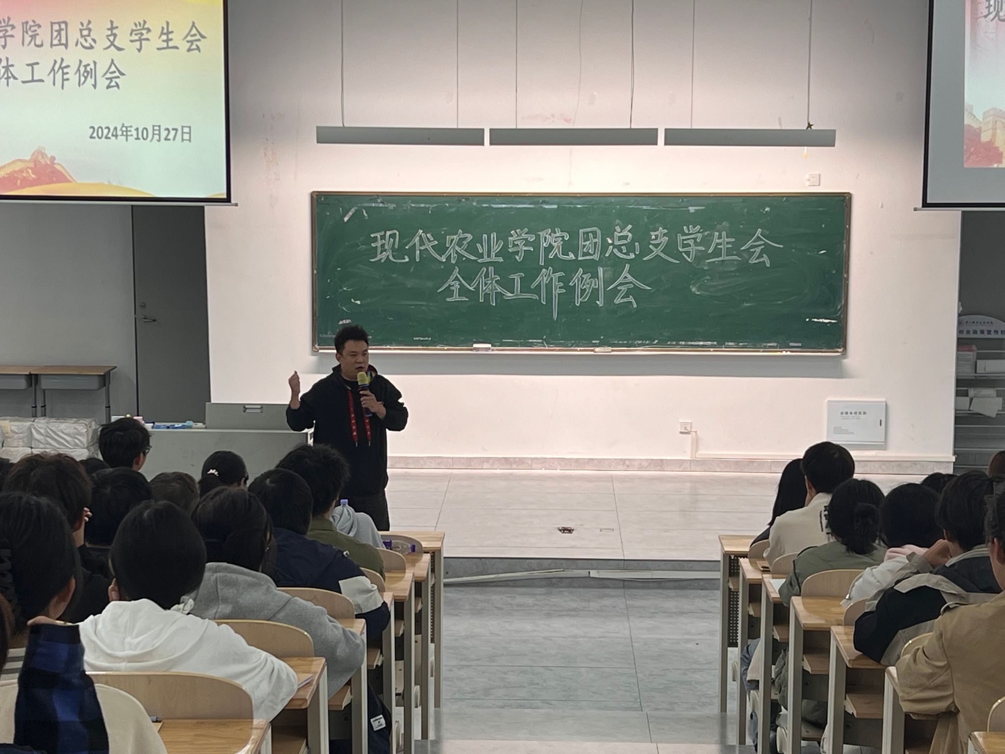 为进一步强化团学干部的教育管理,提升团学工作效能,10月28日,现代农业学院在6101召开团学工作会议。团总支书记何茂平、团总支副书记周琪林及全体团学干部参会。