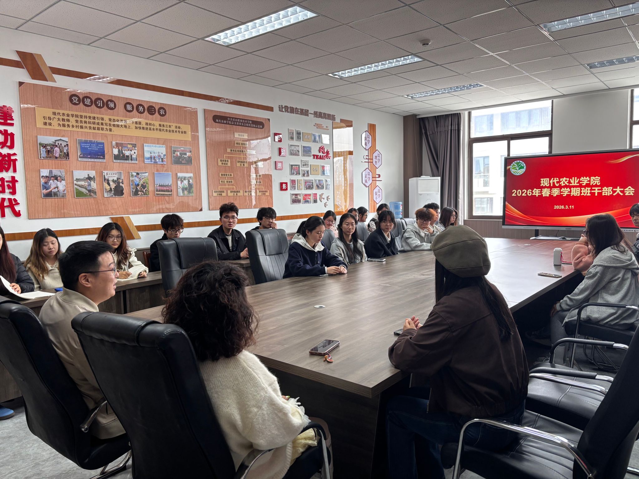 3月11日,现代农业学院在6301党员活动室召开本学期第一次班干部工作例会。