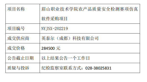 眉山职业技术学院农产品质量安全检测赛项仿真软件采购项目竞争性磋商结果公告