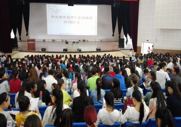 为贯彻《公民道德建设实施纲要》和《高等学校学生行为准则》,落实学院《关于加强校风建设的八条措施》要求,继续将师范教育系学生行为习惯教育深入推进,培养学生明礼诚信、文明礼让、遵纪守法、勤俭节约、热爱劳动的良好习惯,10月12日下午和晚上,师范教育系在学院艺术中心举行了学生养成教育启动仪式,系全体辅导员和学生参加了启动仪式。