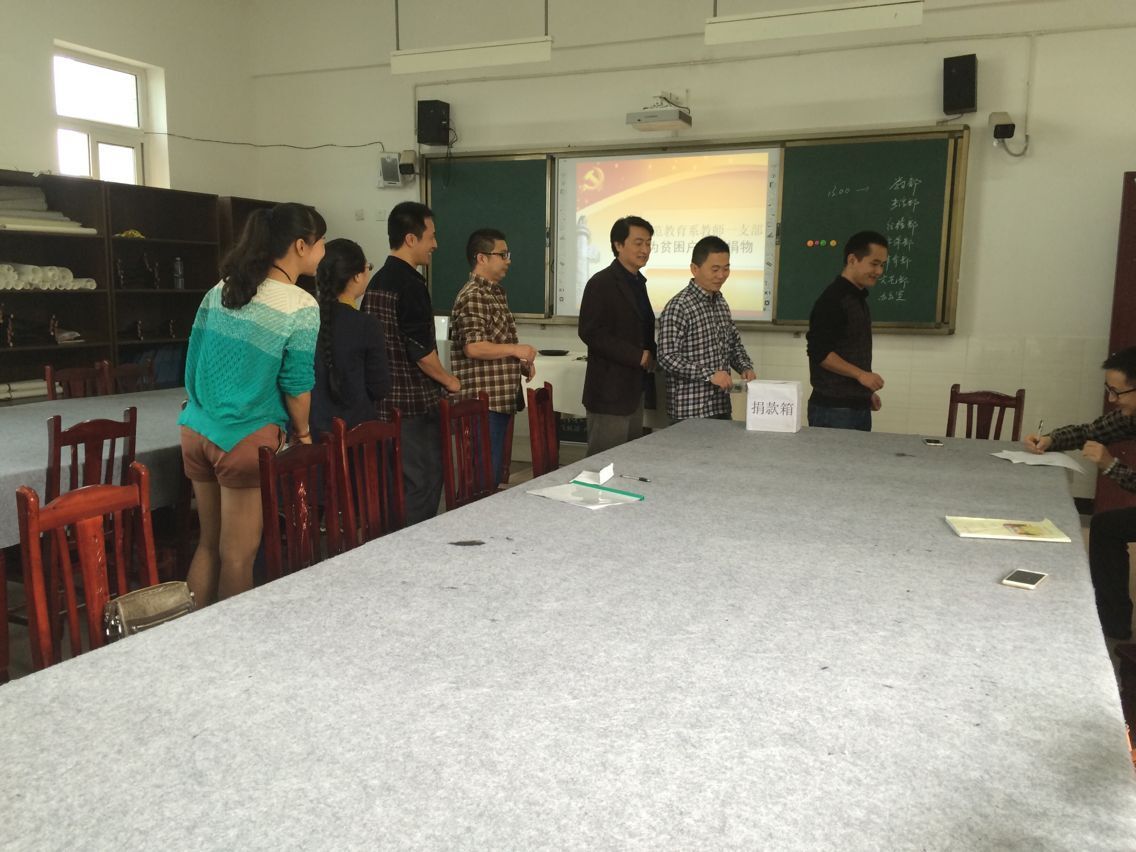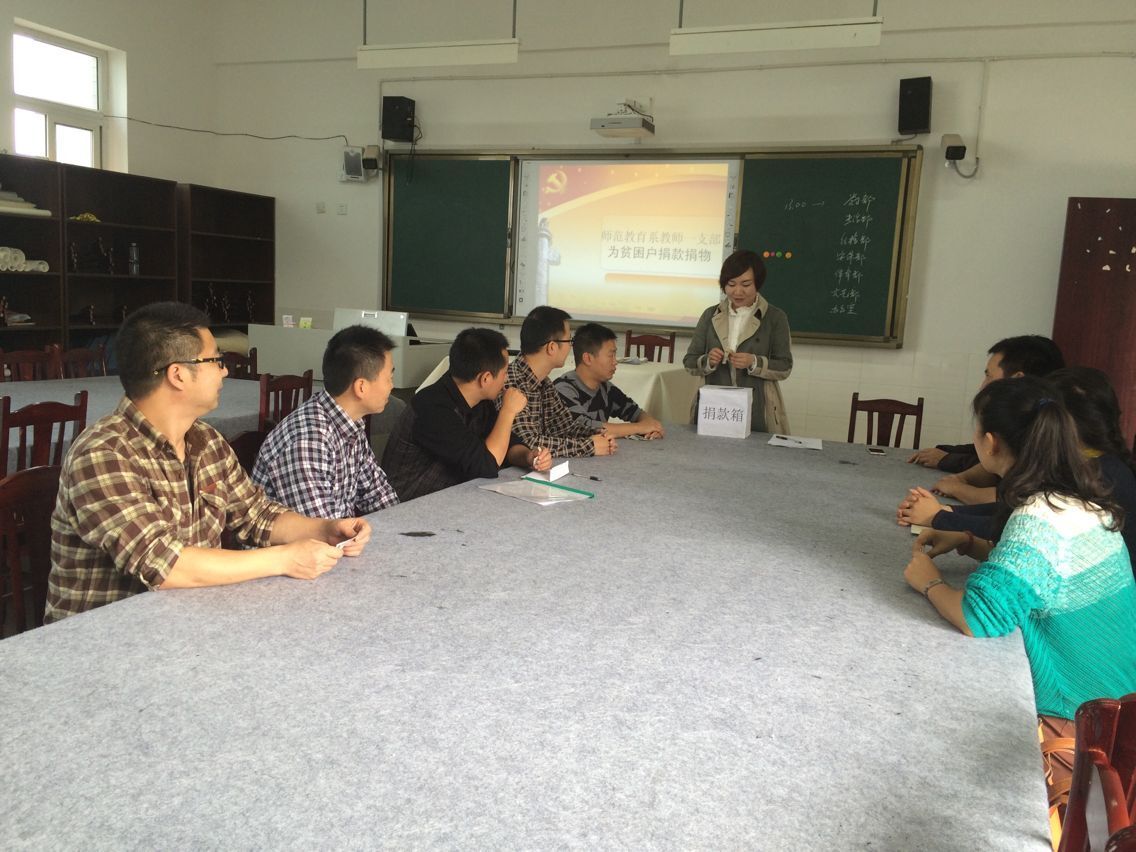 2016年10月17日,师范教育系以各党支部为单位组织开展了“扶贫日”捐款捐物活动,活动由各支部书记主持。
