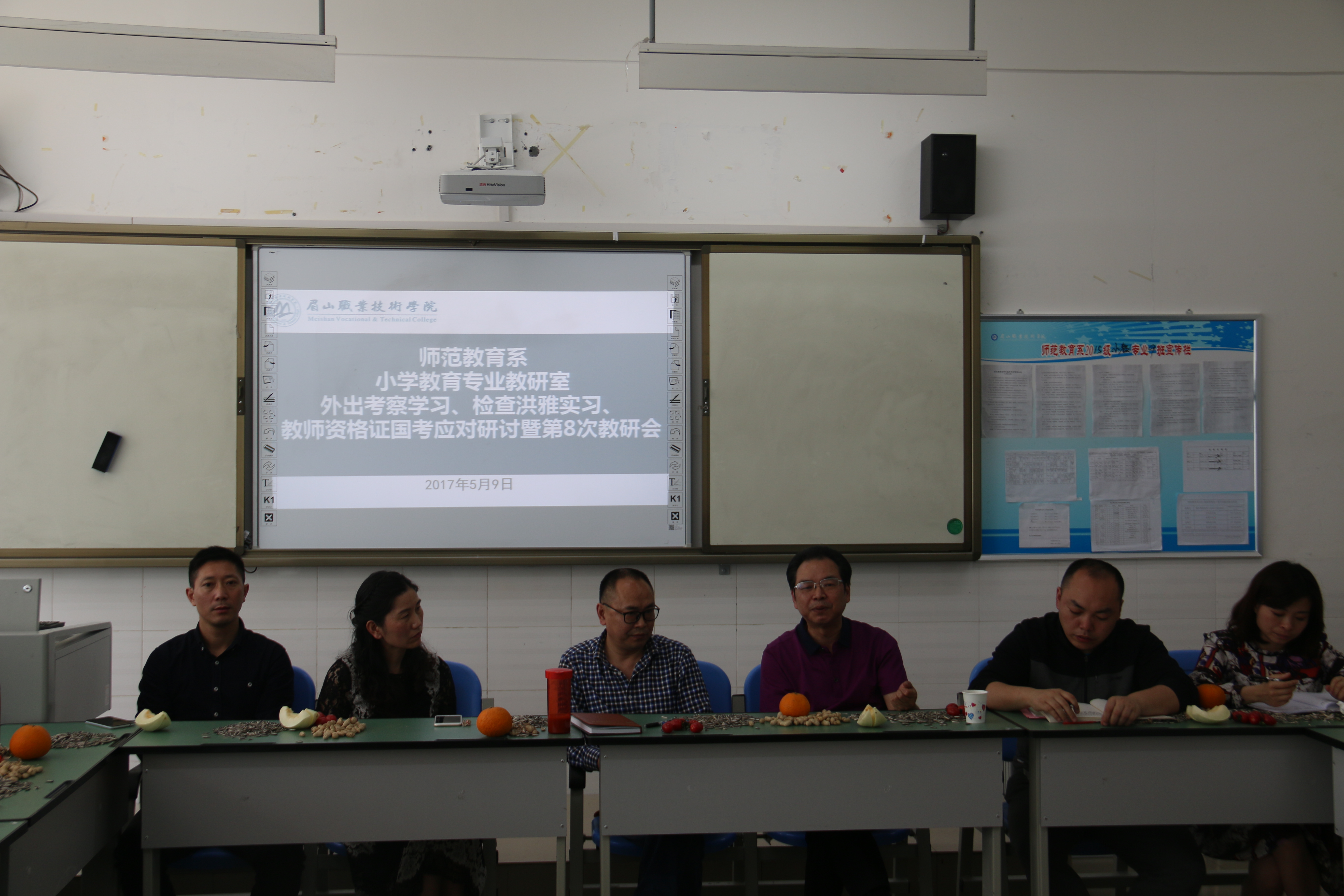 5月9日下午2:30,师范教育系小学教育专业教研室在1208教室召开外出考察学习汇报、检查洪雅实习汇报、教师资格证国考布置会暨本学期第8次教研会。党委委员、组织人事部部长谭学良、教务处处长罗树明、师范教育系党总支书记丁盛、师范教育系副主任(主持工作)张雪艳莅会指导。小学教育专业教研室全体教师参加会议,会议由小学教育专业教研室主任胡小波主持。