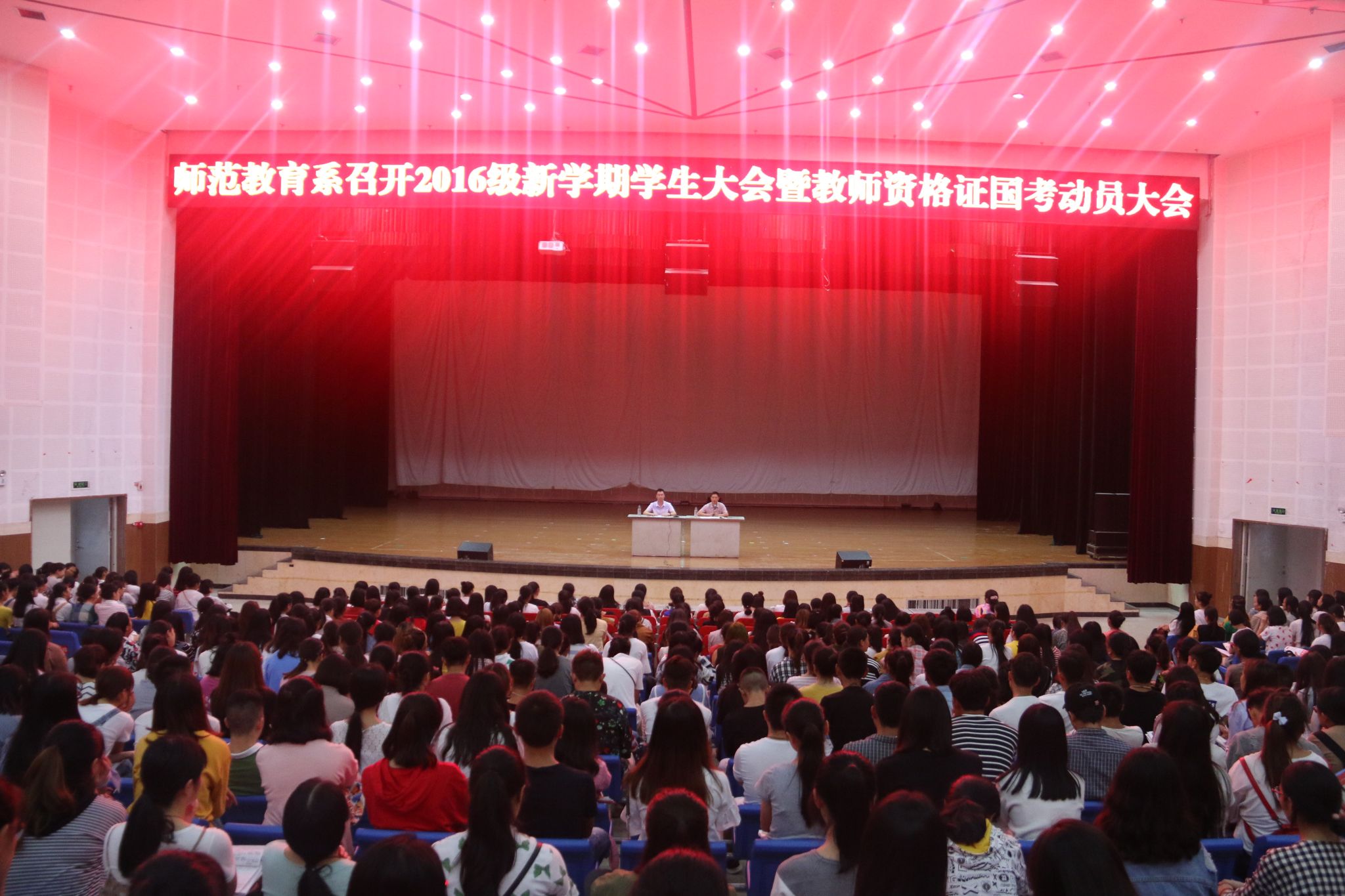2017年9月4日晚18:40,师范教育系在学院艺术中心召开了2016级学生大会暨国考动员大会,系学生科长李兴龙主持了会议,系党总支书记丁盛、全体学管人员和2016级学生参加了此次大会。