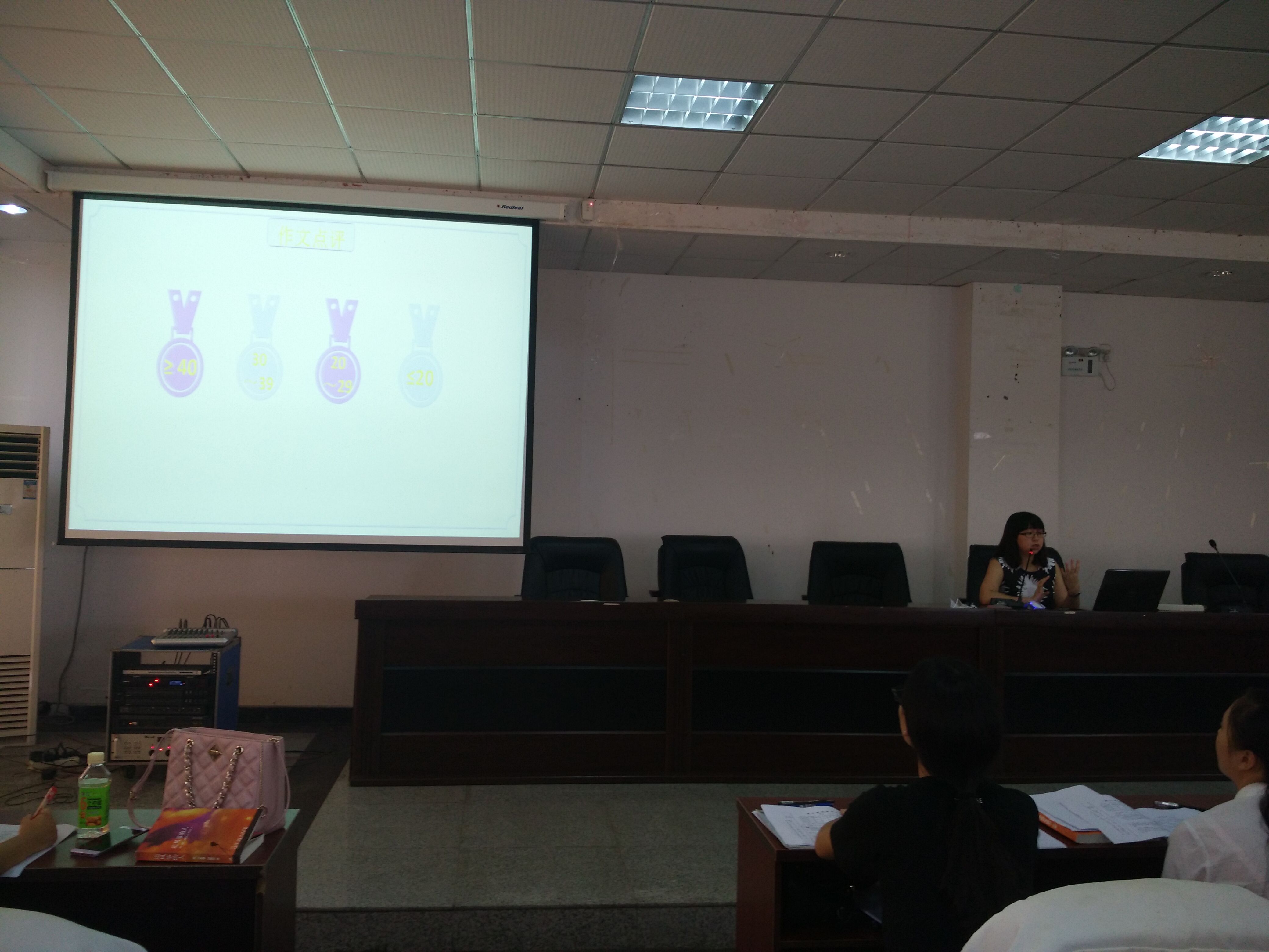 随后,负责《综合素质》作文板块的伍成艳老师,对作文中的写作技巧和注意事项进行了讲解和分析,她结合学生作文中出现的一些突出问题,提出了提高写作技巧的一些方法和建议。