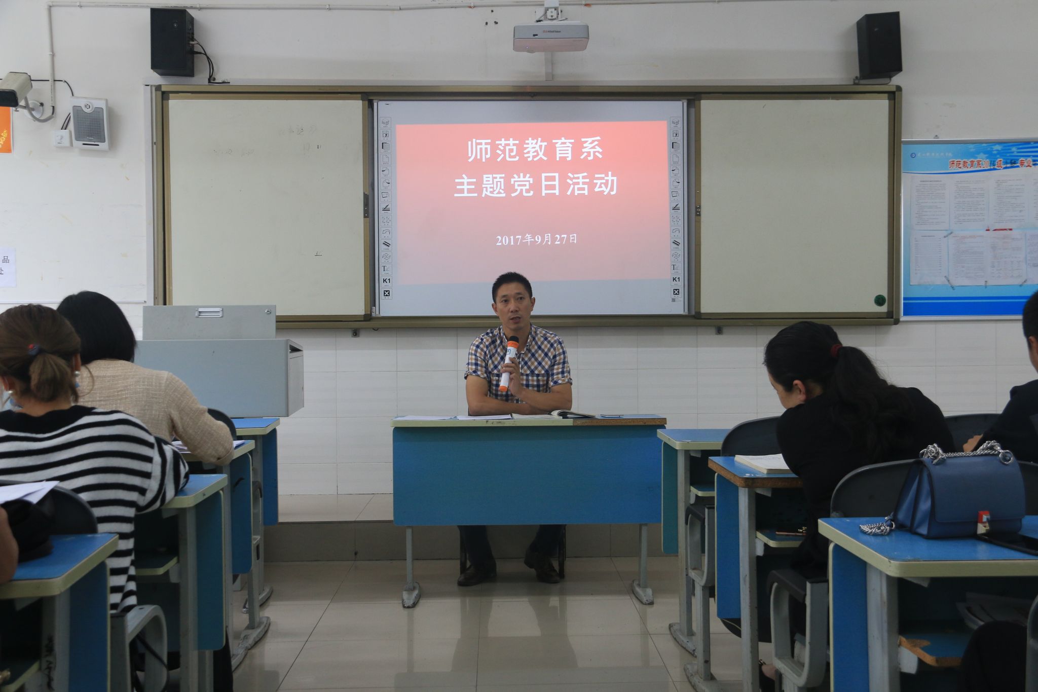 2017年9月27日下午,师范教育系党总支在1206教室召开了党员大会。会议由党总支书记丁盛主持,各支部书记和全体党员参加了此次会议。