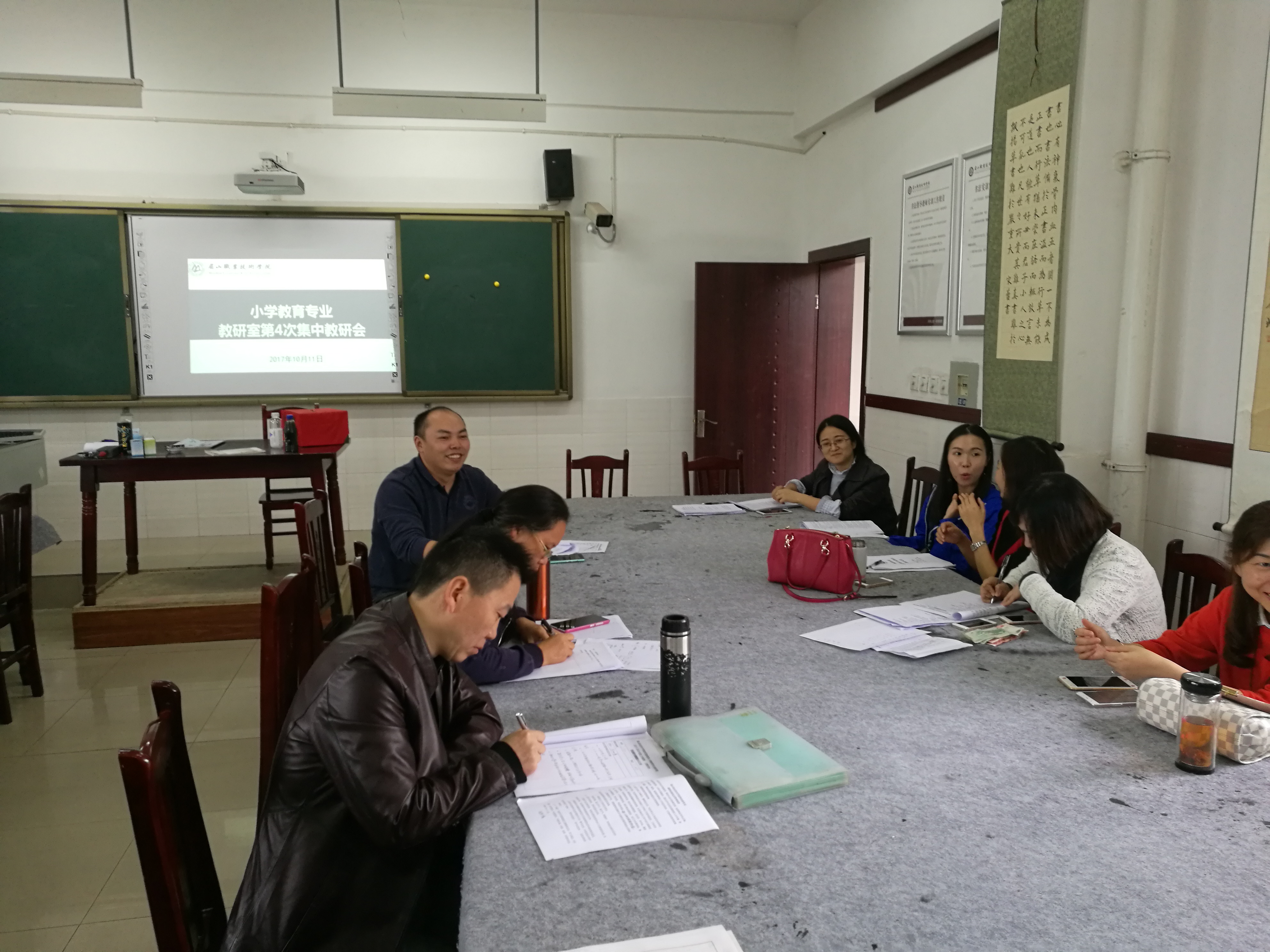 10月11日,小学教育专业教研室在1207教室开展教研活动,教研室主任胡小波对10月份的教学重点工作进行了详细的安排,各课程组针对相关工作进行了讨论。