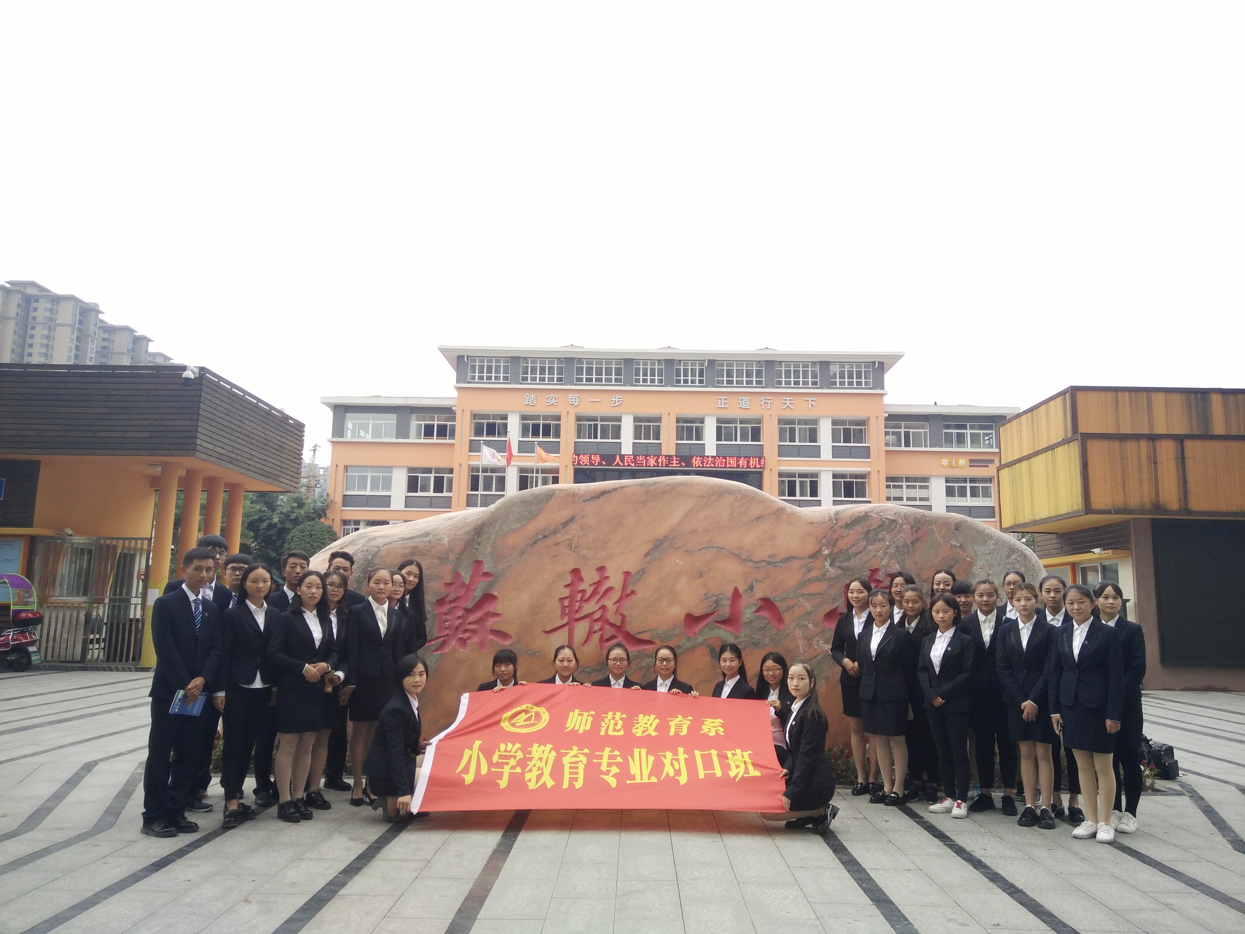 2017年10月12日下午3点,师范教育系小学教育专业2017级32名学生在胡小波、李孝蓉两位老师的带领下走入苏辙小学,师范教育系小学教育专业与苏辙小学2017——2018学年“对口班”活动就此拉开帷幕。