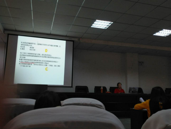 10月18日14:00—15:30,冯涛老师在学术报告厅为16级小学教育专业学生的10月模考作了教育综合知识部分的详细评讲。主要针对模拟考试中出现的问题,从思路的拓展、分析问题的角度、问题的解答步骤及规范等方面进行了专门阐述。
