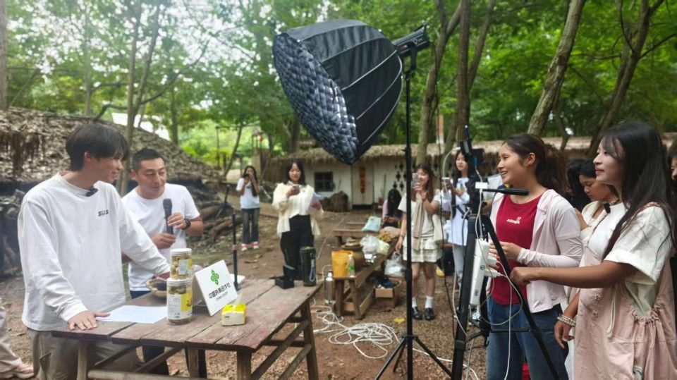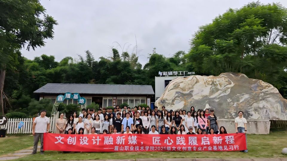 文创专业师生前往眉山仁寿县成都彩蝶文化传媒有限公司直播基地开展实践。活动围绕“直播人货场”核心逻辑展开,基地指导教师结合真实案例,详细讲解了主播人设塑造、选品策略与场景适配技巧。师生分组参观了室内美妆服饰直播间与室外生鲜农产品直播现场,直观体会“场景服务产品”的设计理念。在备受期待的“学生代表开播”环节,10余名学生在教师指导下,运用简易农产品完成15—20分钟模拟直播,其余同学通过观摩学习,从“实践者”与“观察者”双重视角中掌握直播流程与互动技巧。