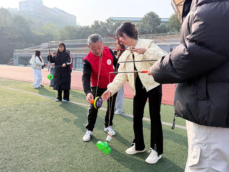 12月10日下午,非遗文化进校园——非遗空竹专题讲座暨体验活动在眉山职业技术学院运动场举行,活动由我校健身指导与管理专业教师与眉山市空竹运动协会多位能手共同组织。