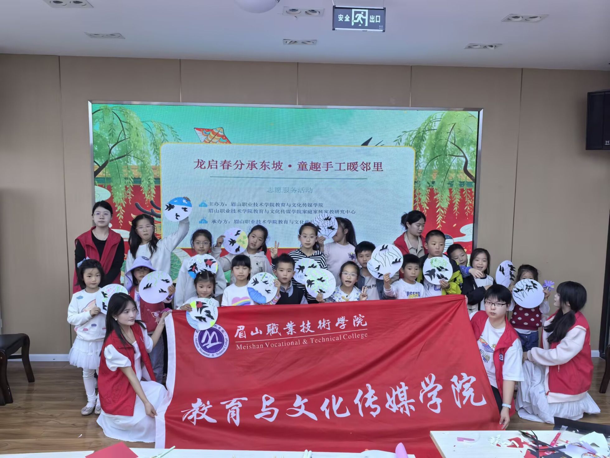随后的手工制作中,志愿者指导孩子们完成了“东坡春日诗意贴画”手工制作。孩子们认真裁剪、细心粘贴,充分发挥想象力与创造力,在动手实践中体验创作乐趣。一个个灵动可爱的燕子手工作品在孩子们手中诞生,大家互相展示成果,现场洋溢着欢乐与温馨。
