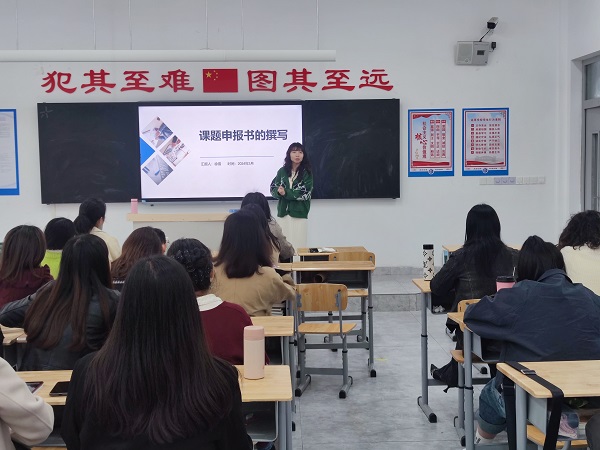 会上,孔霞首先带领全体教师学习了《眉山职业技术学院作风建设监督检查工作实施方案》,重点就检查的内容和工作要求进行强调,要求教师们对照监督检查内容开展自查,并认真参与配合监督检查工作。随后,专任教师徐雪为与会教师作了“课题申报书撰写”为主题的汇报分享,从课题申报书的核心要素构成,细化到每一个核心要素该如何撰写都进行了详细地说明与阐释,讲解过程中灵活运用案例作载体,深入浅出,鞭辟入里。分享结束后,老师们掌声雷动。