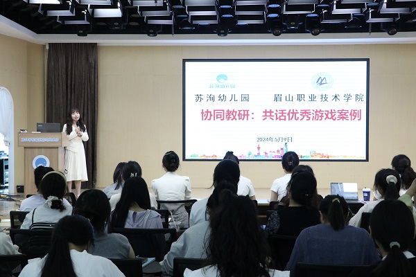 活动结束后,苏洵幼儿园副园长彭秀娟表示,希望在幼儿园教研活动中继续深化院园合作,以眉山职业技术学院与园区对口共研为契机,加快提升园区教师的成长。