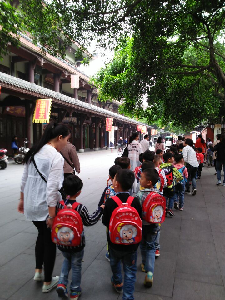 (同学们和幼儿一起向三苏祠出发)