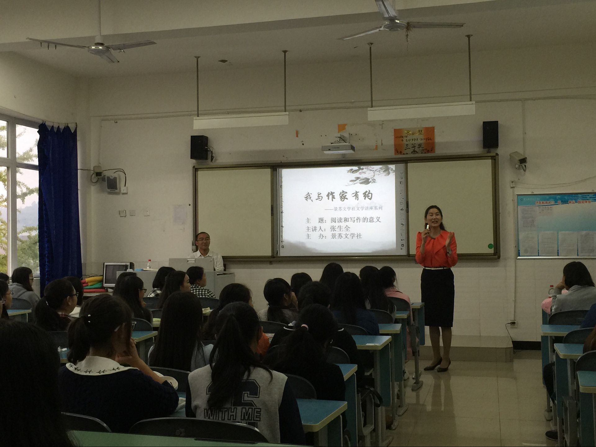 张生全老师围绕“阅读与写作的意义”这一主题,结合自己丰富的写作经验,先后从“阅读和写作是作者对生活的感受和心灵的诉求而形成”、“阅读与写作是一种生命形式”、“人的精神面貌是阅读带给的”、“阅读和写作能够带给人尊严和‘长寿’”、“经典阅读和有生命写作”五个方面娓娓道来,希望同学们多阅读,多写作,体会阅读与写作的快乐。