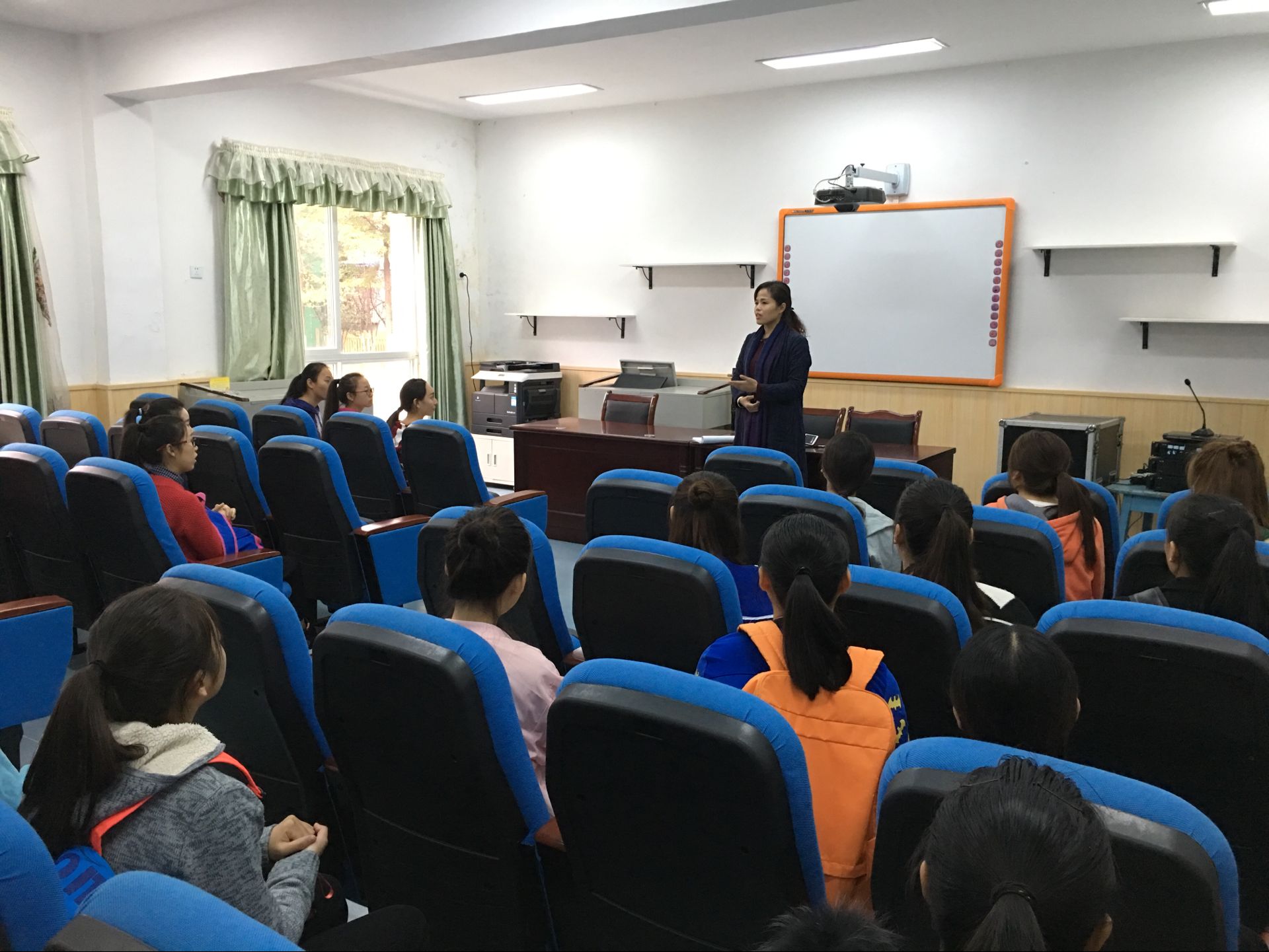 师范教育系领导对本次幼儿园实习活动高度重视,对实习工作做了充分的准备与安排。学前教研室组在教研会上要求带队教师不仅要做好学生管理同时也要深入到幼儿园班级,对幼儿园开设的课程活动进行听课;系上周末晚自习组织同学们召开了实习前的动员大会,学前教研室主任郭静对同学们提出了具体的实习要求和任务。