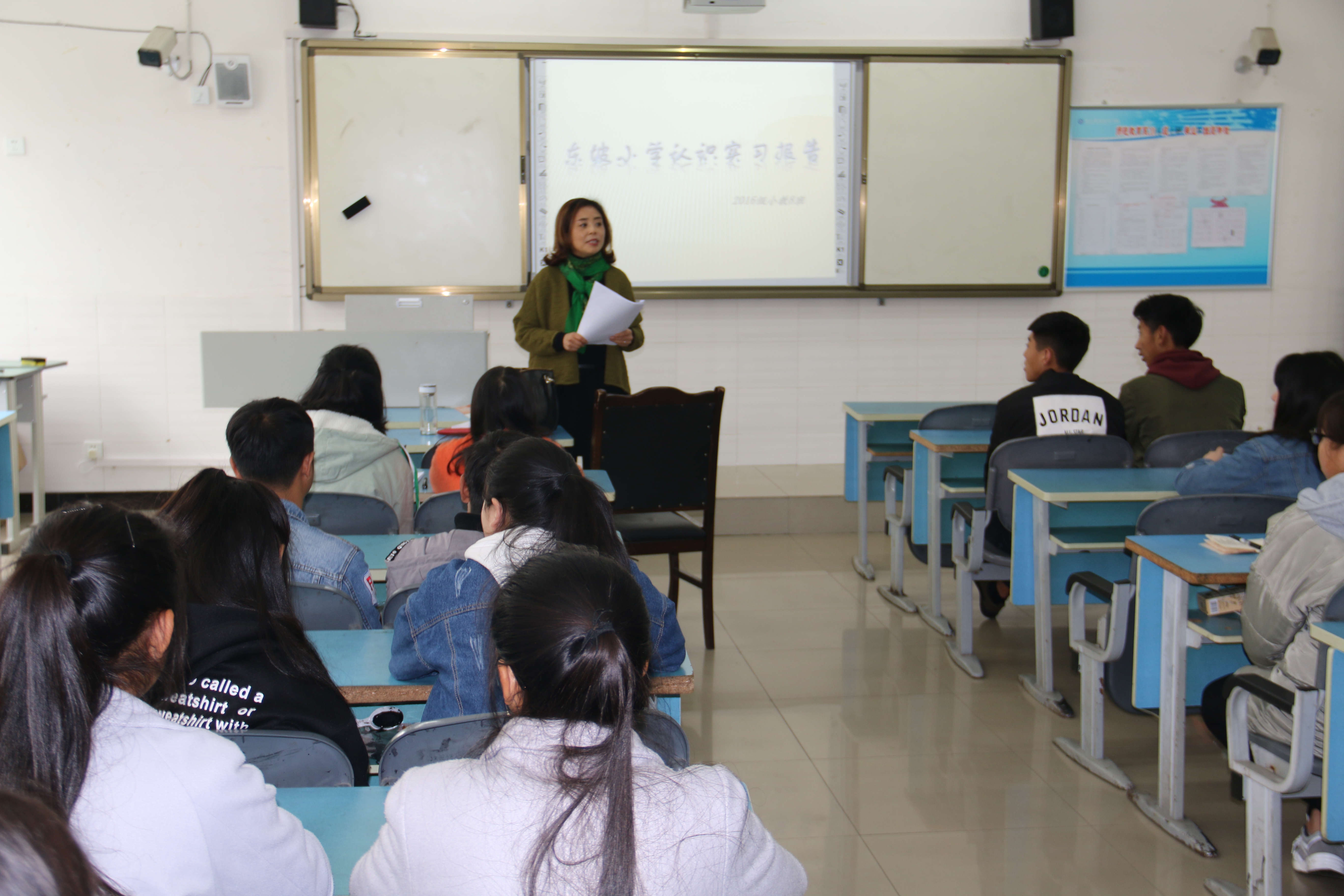 第二阶段参加学生实习汇报会。本次,教研室首次要求全体老师参与学生实习总结汇报会,让教师全面了解学生实习情况,以便改进今后的教学工作。教研室将教研室全体教师分成6组,各组老师分别参加2016级认识实习班实习汇报会。会前,为了使实习工作落到实处,教研室按照“谁指导谁总结、专业教师均参与”的要求,做到既要做好过程指导,也要做好结果指导,并安排各小组老师认真查阅每位学生《认识实习手册》,对学生实习的总体情况有了总体了解。汇报上,各实习小学学生实习组长的总体汇报,至少5位学生做心得交流,最后,由各实习小学实习指导教师对实习情况作总结。