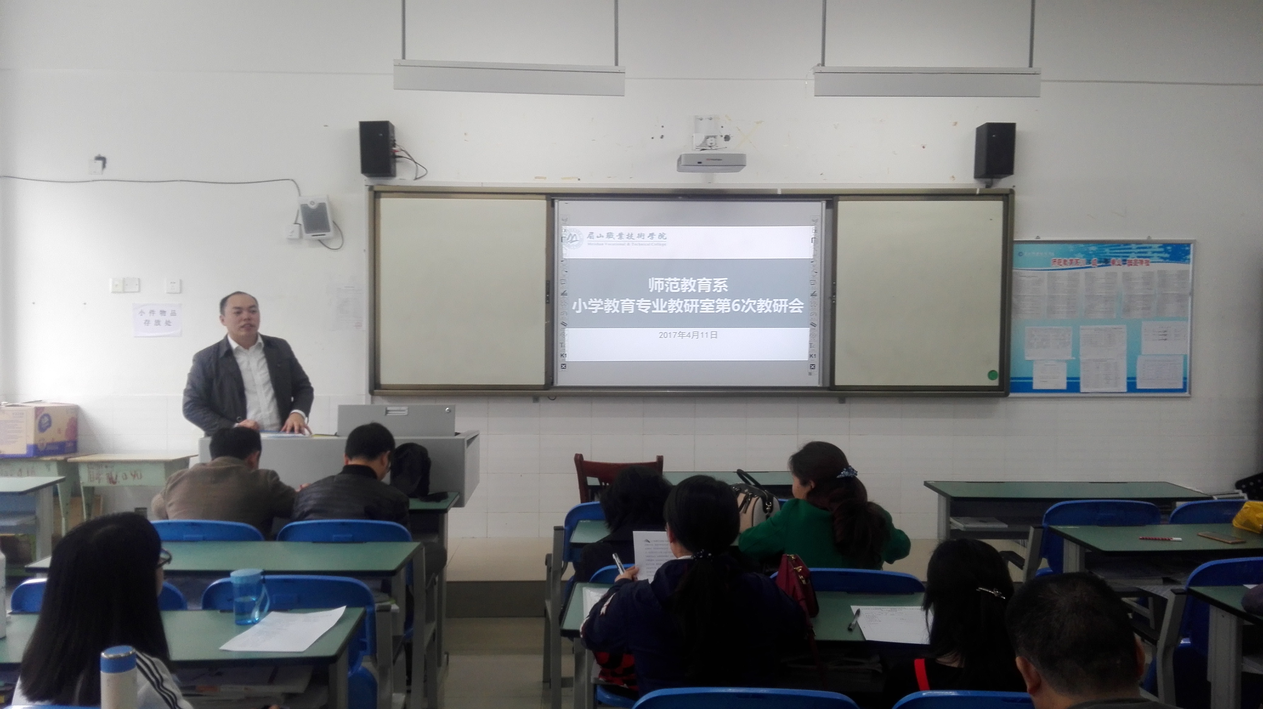 4月11日下午2:00,师范教育系小学教育专业教研室在1208教室召开本学期第六次教研会。小学教育专业教研室全体教师参加会议,会议由小学教育专业教研室主任胡小波主持。
