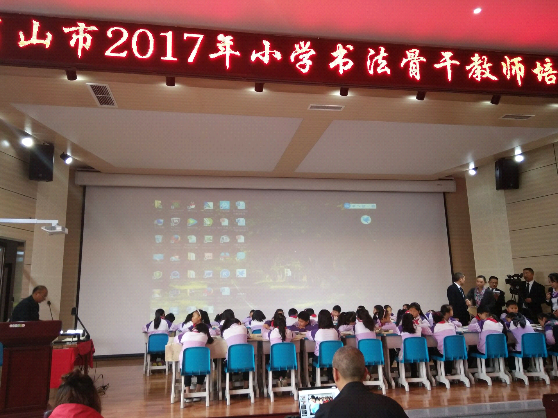 这次培训,眉山市教育体育局邀请了北京市从事书法教育十余年的王伟老师进行了一次小学书法创新课堂教学实录,给与会教师如何开展小学课堂书法教学创新提供了样本,也为我院联系小学实际,进行校校融合,开展书法课堂教学改革提供了新的思路。