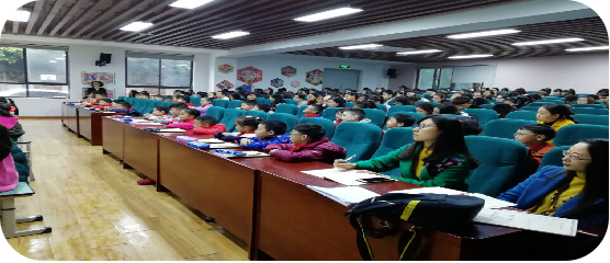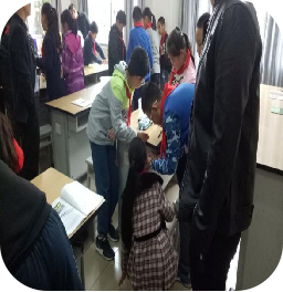 2017年11月17日星期五,市一小跟岗实习的27名语文方向的同学,携带凳子来到大北街小学教研室参加”识字写字”板块化教学观摩活动。教学内容非常丰富。有章明直 老先生高段讲座《浅谈小学写字(书法)教学》;有余洋主任,三年级上册《望天门山》;何英老师,二年级上册《夜宿山寺》。