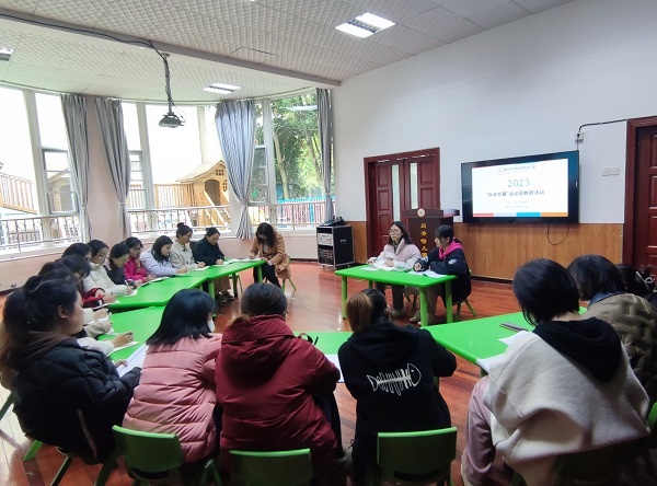 首先,幼儿园一线教师阳玥、邢婧妍分别就教研活动的主题进行了陈述和说明;随后,大家围绕“如何开展秋收冬藏运动周活动”展开了热烈的研讨,见习学生积极踊跃发言,大胆建言献策;最后,大家形成了一致认可的教研活动方案。