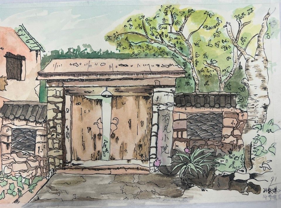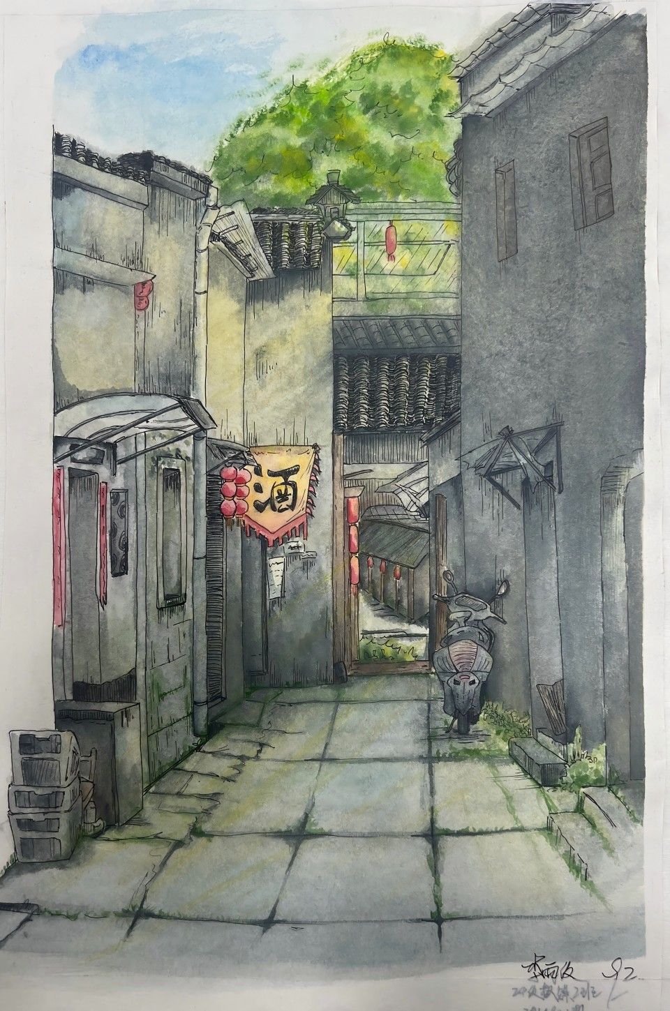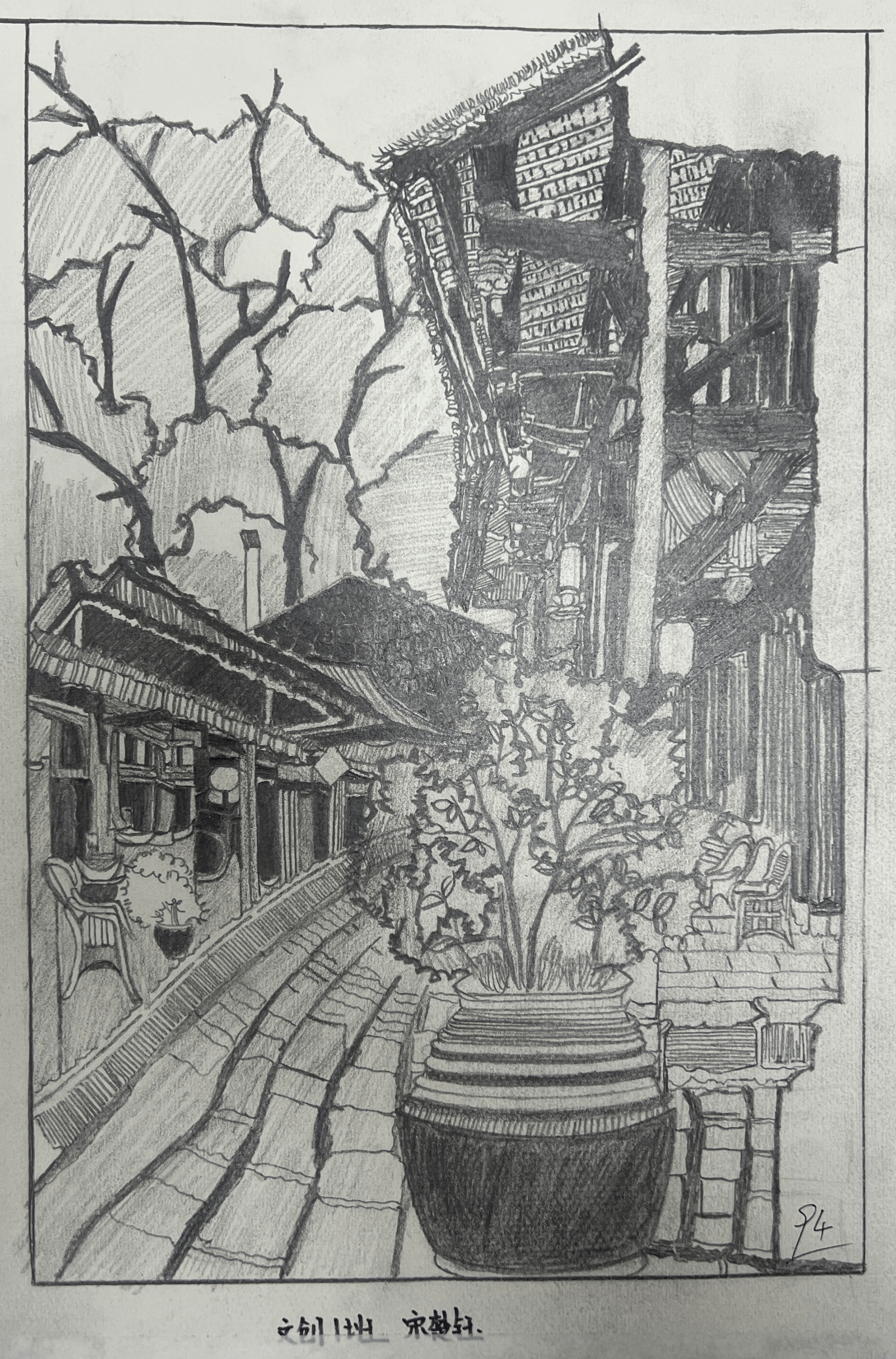 在写生实训期间,学生们深入挖掘黄龙溪的历史文化底蕴,将古老的建筑风格、传统的民俗文化与绘画手法相结合,创作出一系列富有文化内涵的作品,对黄龙溪的自然景观与人文风貌进行了全方位、多角度的记录与创作。