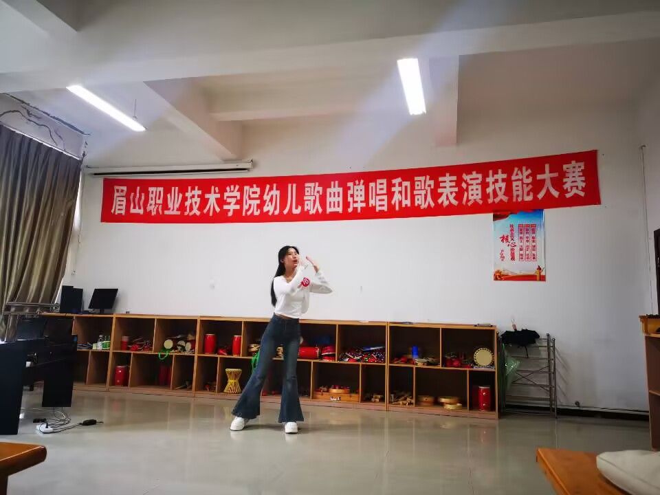 决赛现场,选手们以自信昂扬的姿态依次登台。指尖在琴键上灵活跃动,流畅的和弦与旋律倾泻而出;清亮的歌声搭配生动的肢体动作,将《小星星》《蜗牛与黄鹂鸟》等经典幼儿歌曲演绎得童趣盎然。选手们凭借扎实的钢琴功底、富有感染力的演唱和创意编排,充分展现了学前教育专业学生对音乐艺术的深刻理解与专业素养。