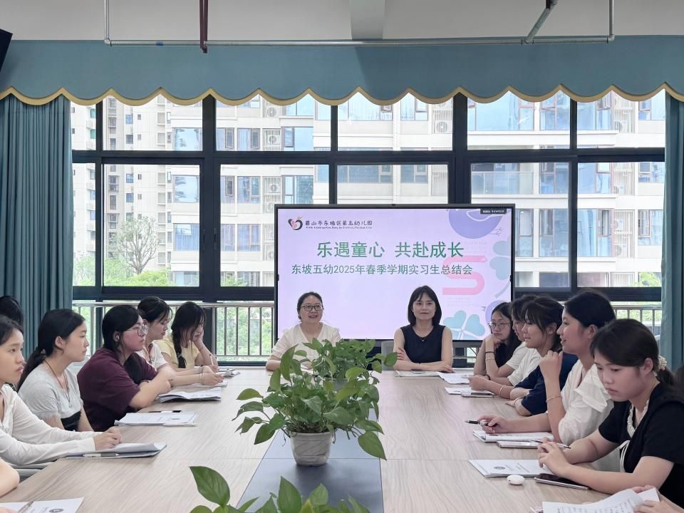 为深化校地合作,促进学前教育专业人才培养质量提升,6月18日,眉山职业技术学院与东坡区第五幼儿园联合召开学前教育专业学生见习总结会。幼儿园主任杨梦娟主持会议,五幼全体教师、学院带队教师及见习学生共同参会。