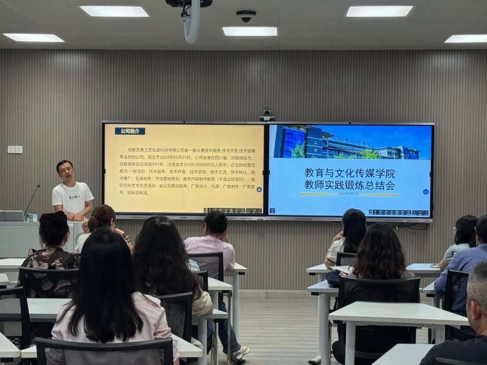 此次教师实践锻炼覆盖健身服务、学前教育、包装科技、制药、广告设计、装饰工程等多个领域,19名教师分别在眉山达达健身连锁、眉山市东坡区双河幼儿园、成都艺高工匠包装科技有限公司、绵德堂制药有限公司等12家企事业单位完成实践任务总结会通过19名教师的实践成果汇报,系统总结上半年顶岗实践工作,为后续教育教学改革与教师专业能力提升明确方向。