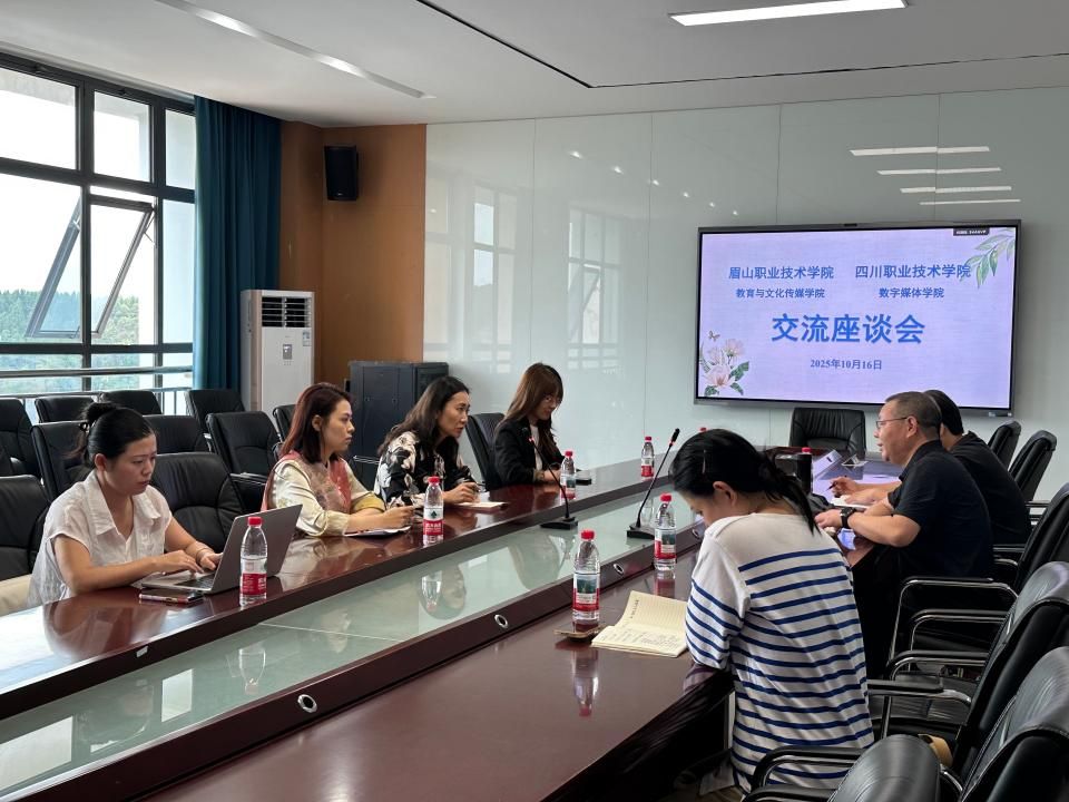 10月16日,教育与文化传媒学院党总支副书记廖颖带队,艺术教研室负责人李律佳、教师刘芳伶、李瑞丰一行四人,赴四川职业技术学院开展学习交流活动。
