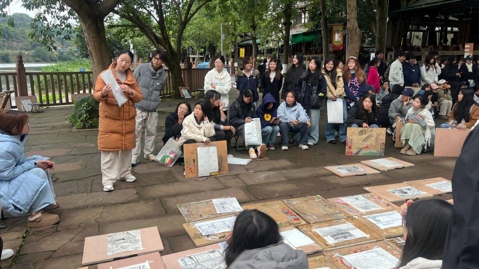 为强化学生专业基础、提升艺术感知力与创作能力。2025年11月8日至17日,教育与文化传媒学院2025级文化创意与策划专业学生赴成都双流区黄龙溪古镇,圆满完成了为期十天的专业写生实践课程。本次实践课程由学院艺术教研室教师李旭和罗琳带队指导。